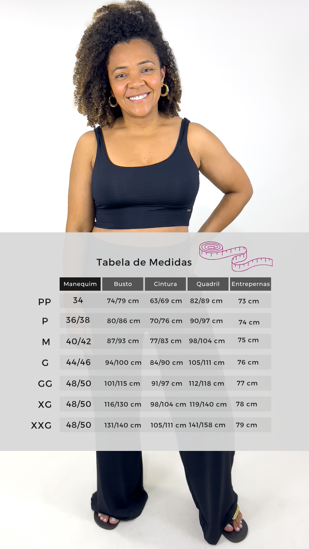 Confeccionada em tecido de toque suave e extremamente confortável, ela possui caimento fluido que se adapta ao corpo com naturalidade, proporcionando liberdade em cada movimento.